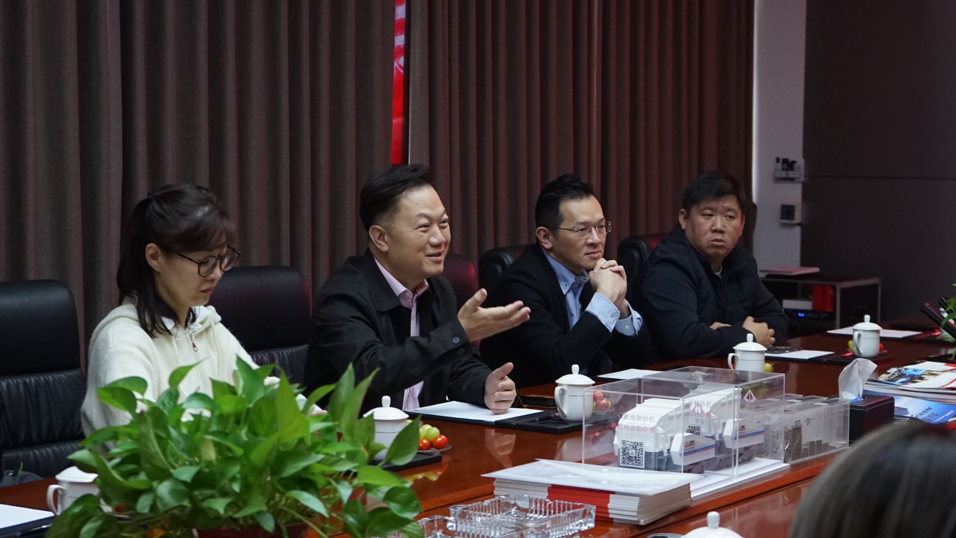 The delegation from the Singapore Sand and Gravel Association first visited the exhibition hall of Sanming Heavy Industry. Inside the exhibition hall, the delegation learned about Sanming Heavy Industry's development history, corporate culture, technology research and development system, as well as its innovative achievements in the field of sand and gravel equipment manufacturing. They expressed high praise for Sanming Heavy Industry's technical strength in intelligent and green mining machinery and equipment.