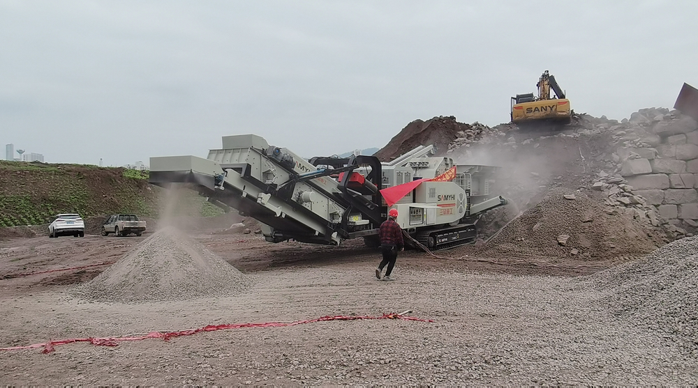 昨日,三銘重工履帶式移動(dòng)破碎站客戶在重慶正式投入運(yùn)營。