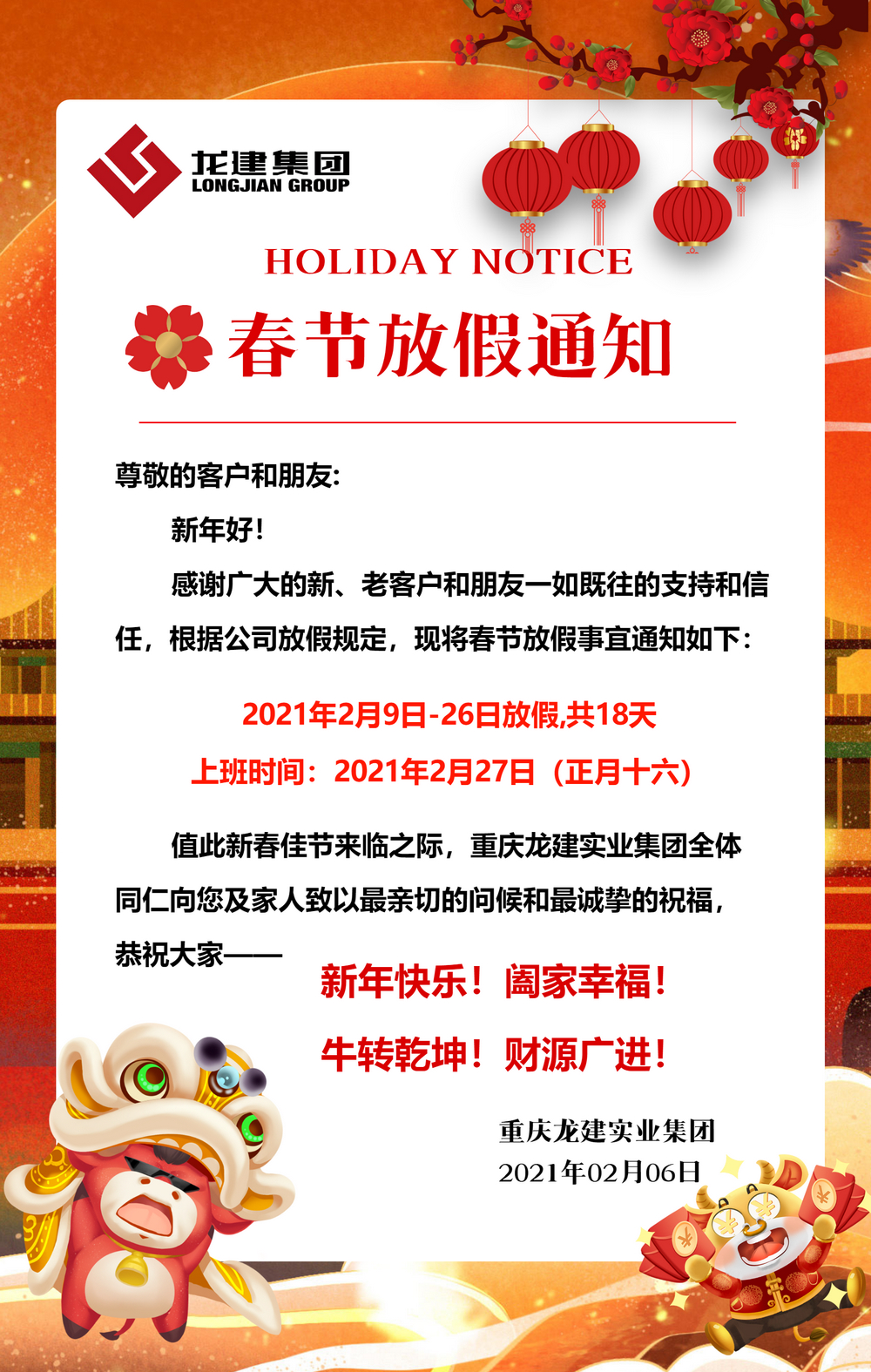 2021牛年新春將至,感恩新老客戶一路同行,愿2021乘風(fēng)破浪,共創(chuàng)輝煌!