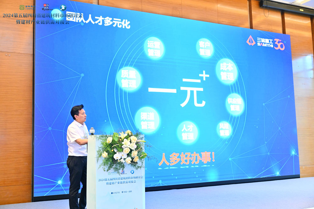 2024年6月27日,四川省成都建材交流會(huì)在成都隆重開(kāi)幕。本次交流會(huì)旨在推動(dòng)建材行業(yè)的技術(shù)交流與合作,整合各類優(yōu)質(zhì)資源,助力企業(yè)創(chuàng)造優(yōu)質(zhì)效益,推動(dòng)四川建筑行業(yè)持續(xù)健康發(fā)展。在此次盛會(huì)中,重慶三銘重工有限公司榮幸地受邀參展,重慶三銘重工營(yíng)銷總經(jīng)理張智鋼攜“一元+服務(wù)體系”成為現(xiàn)場(chǎng)焦點(diǎn)。